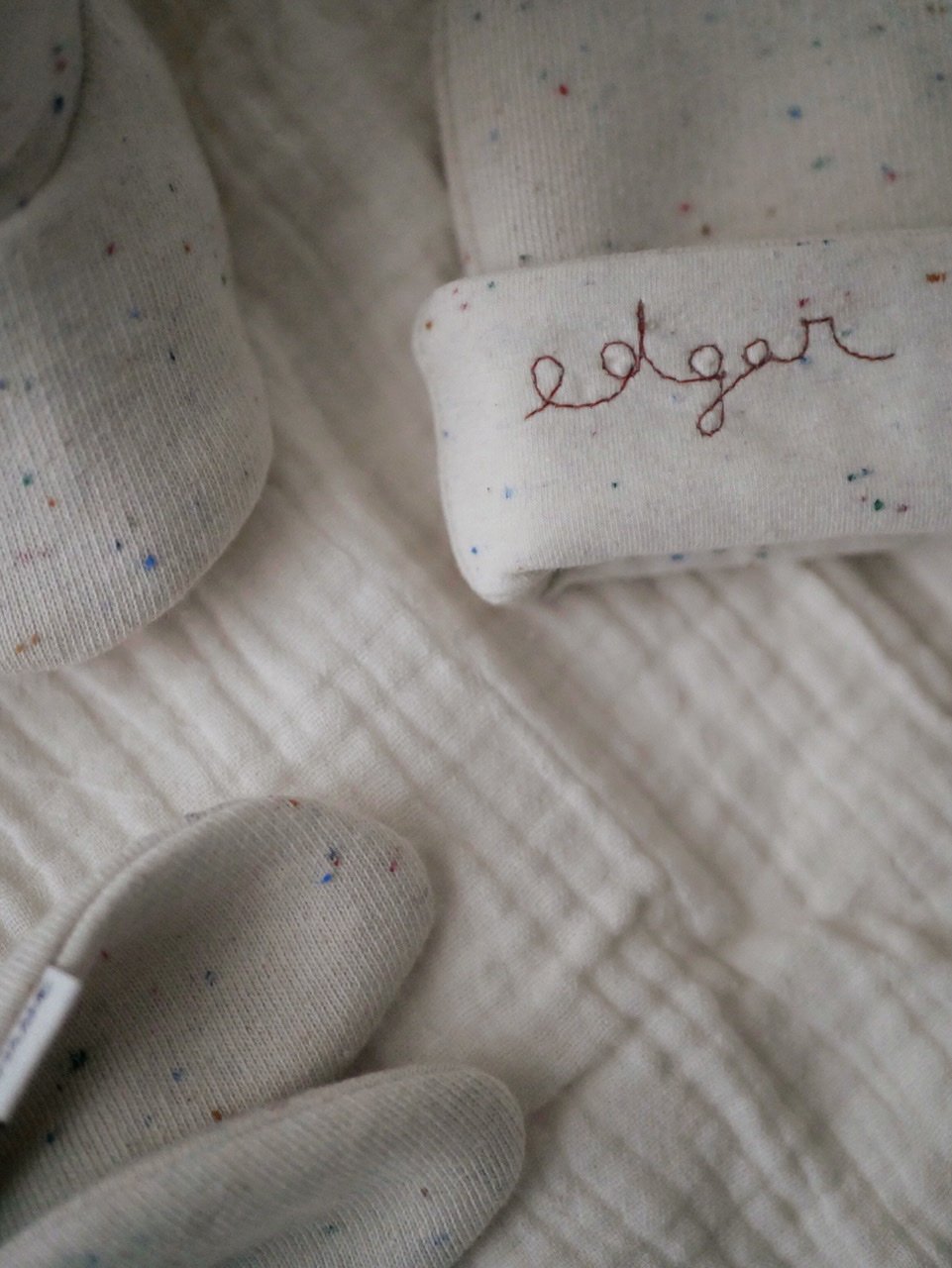 N’oubliez pas de me préciser le prénom que vous souhaitez faire broder sur le bonnet.