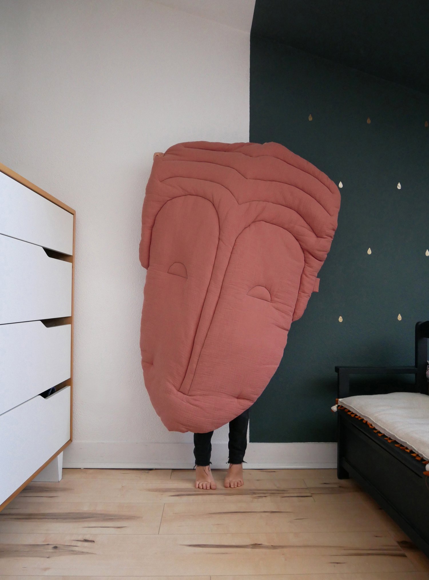 It is made of double cotton gauze certified OEKO-TEX® Standard 100 and is machine washable at 30°C.