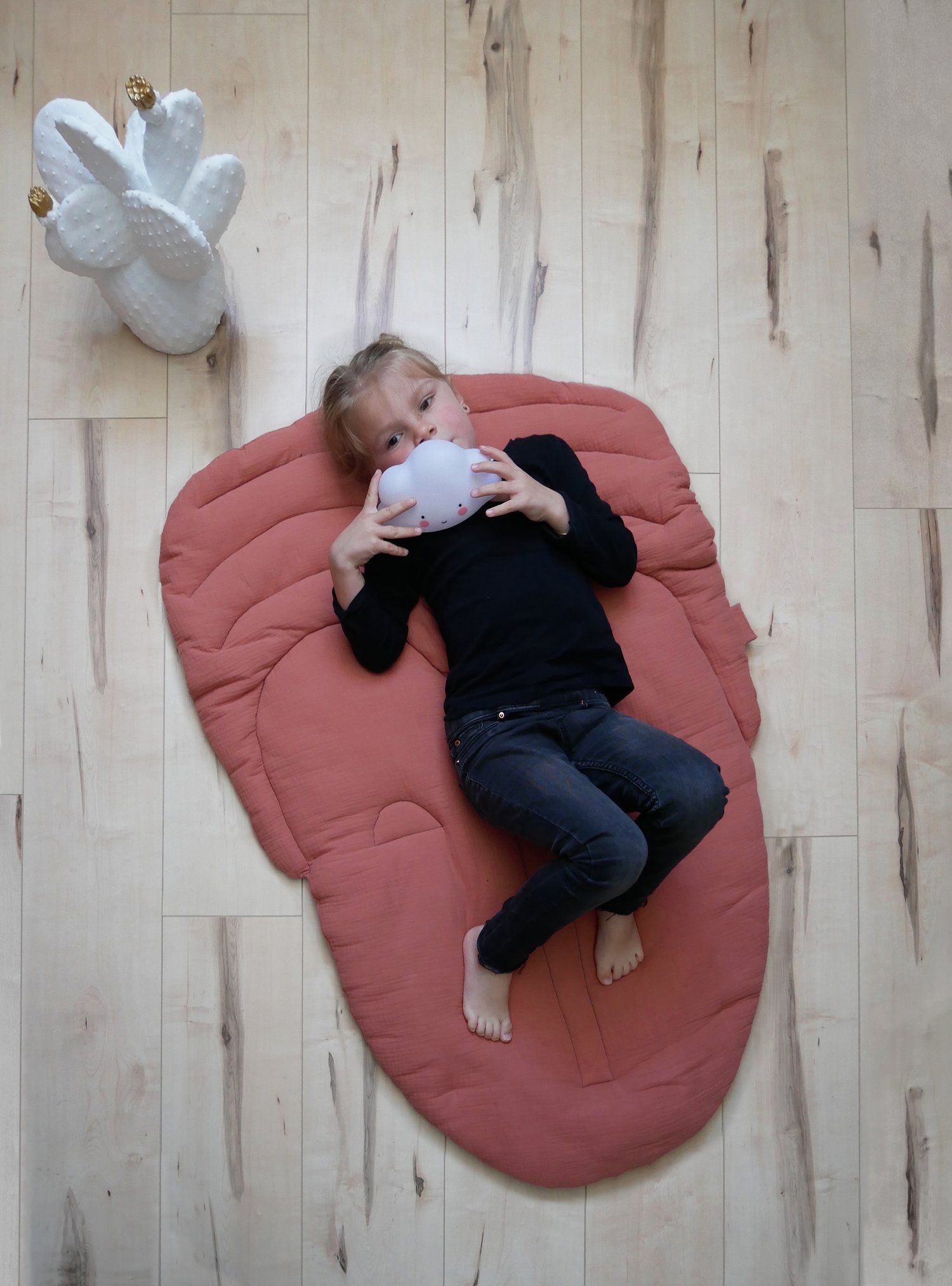 Le tapis de jeu est entièrement confectionné à la main, à Paris, par la créatrice.